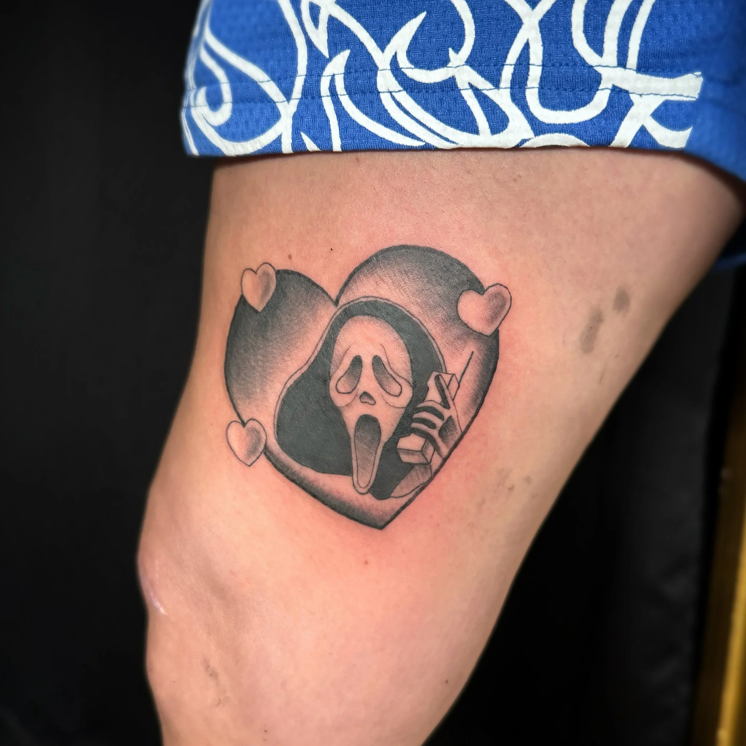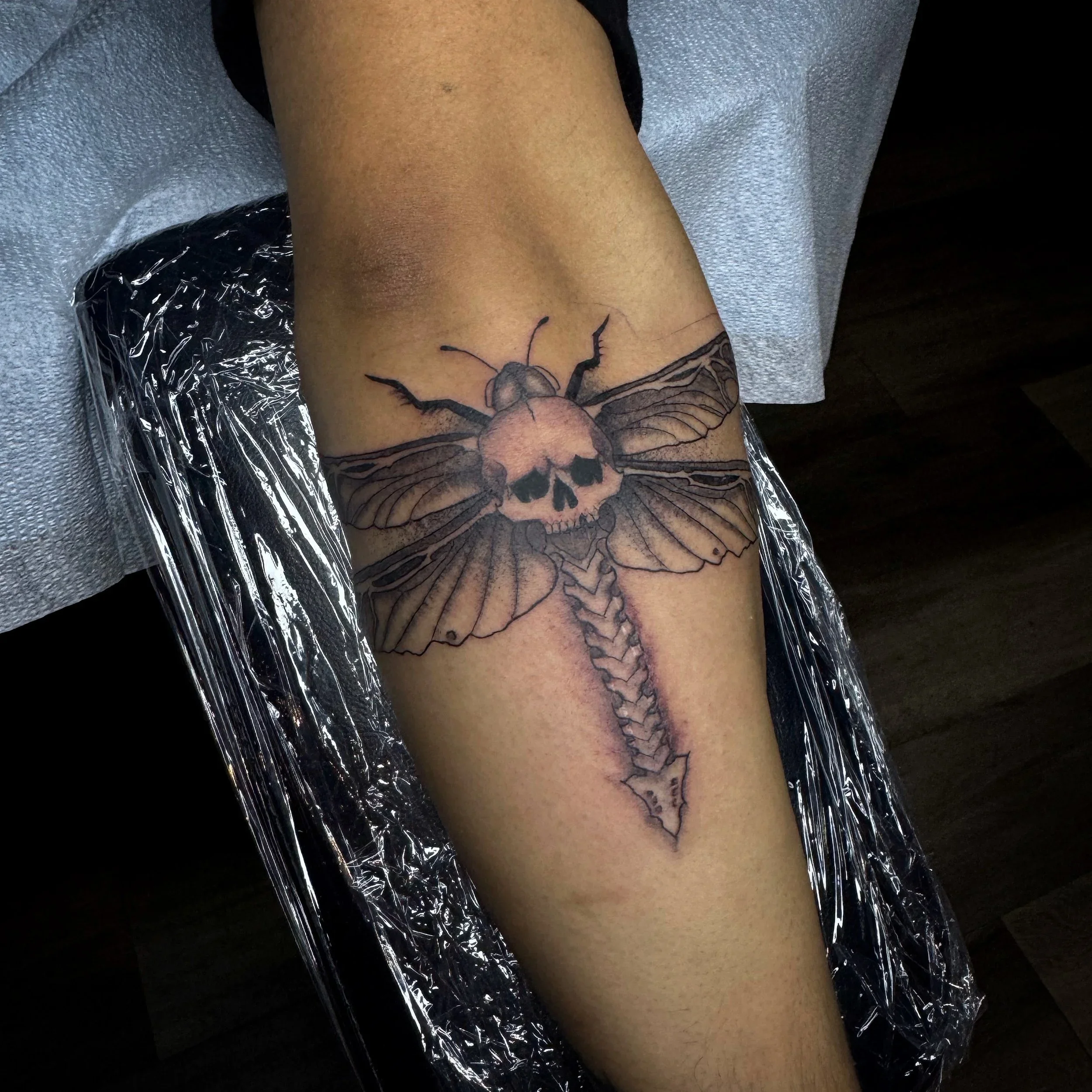 Understanding the craft has been very important to Kaylee, connecting with experienced tattooers, and learning as much about the history and the art form as possible. Her earliest forms of escapism were horror films and heavy music; Kaylee quickly found that tattooing is an artistic medium for personal expression.