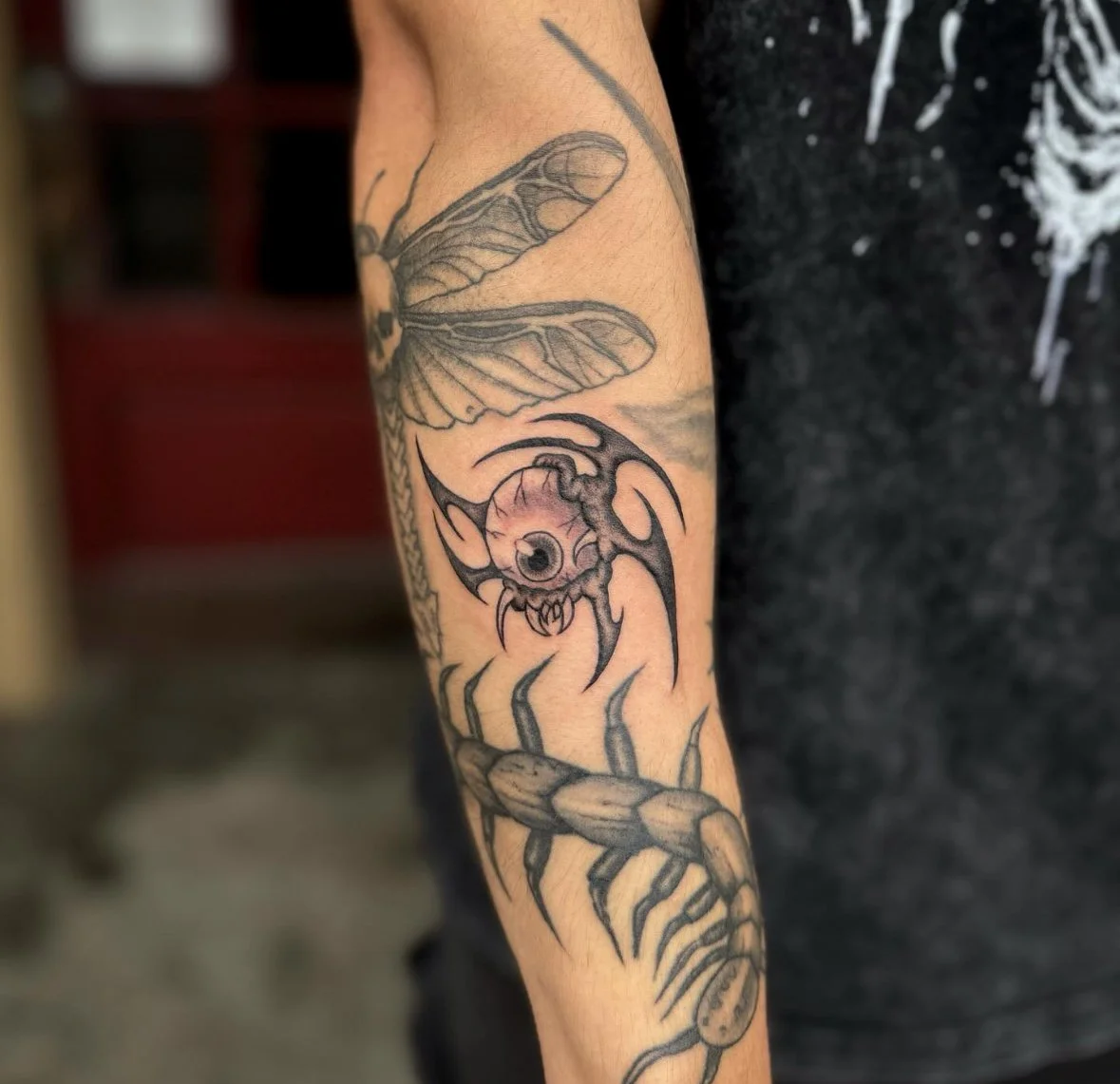 Kaylee specializes in black and grey, fine-line, cyber sigilism, tribal, medieval imagery.